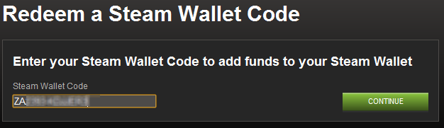 Now enter your Steam wallet code and click Continue